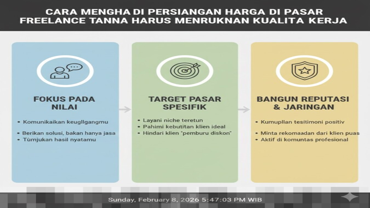 Dengan menerapkan berbagai strategi ini, persaingan harga tidak perlu lagi menjadi ancaman bagi para freelancer profesional. Fokus pada kualitas, nilai, dan reputasi dapat membantu Anda tetap kompetitif dan dihargai di pasar, tanpa harus menurunkan standar kerja yang telah Anda bangun selama ini.